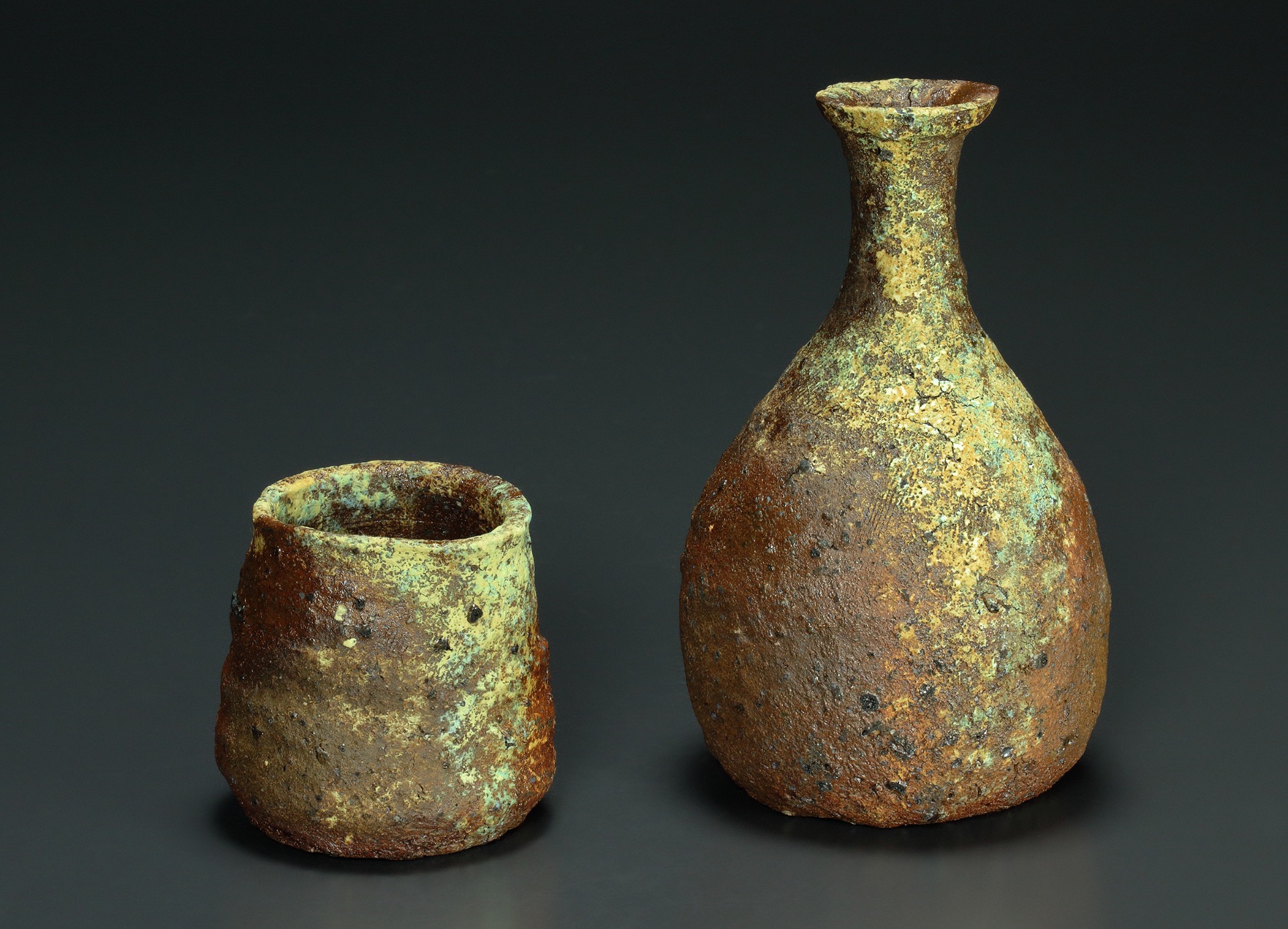 彩華備前酒盃 6.7w6.9h 彩華備前徳利 8.8w14.8h